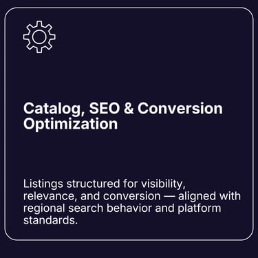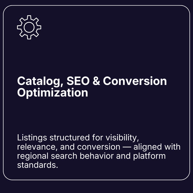 We optimize titles, attributes, media, SEO, and compliance so products stay visible — and shoppable.