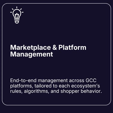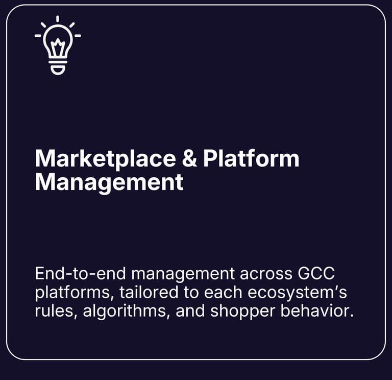 We manage growth across leading GCC e-commerce platforms and regional marketplaces, supporting brands that sell in the UAE and the wider Middle East.