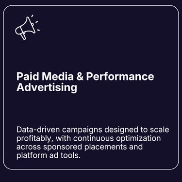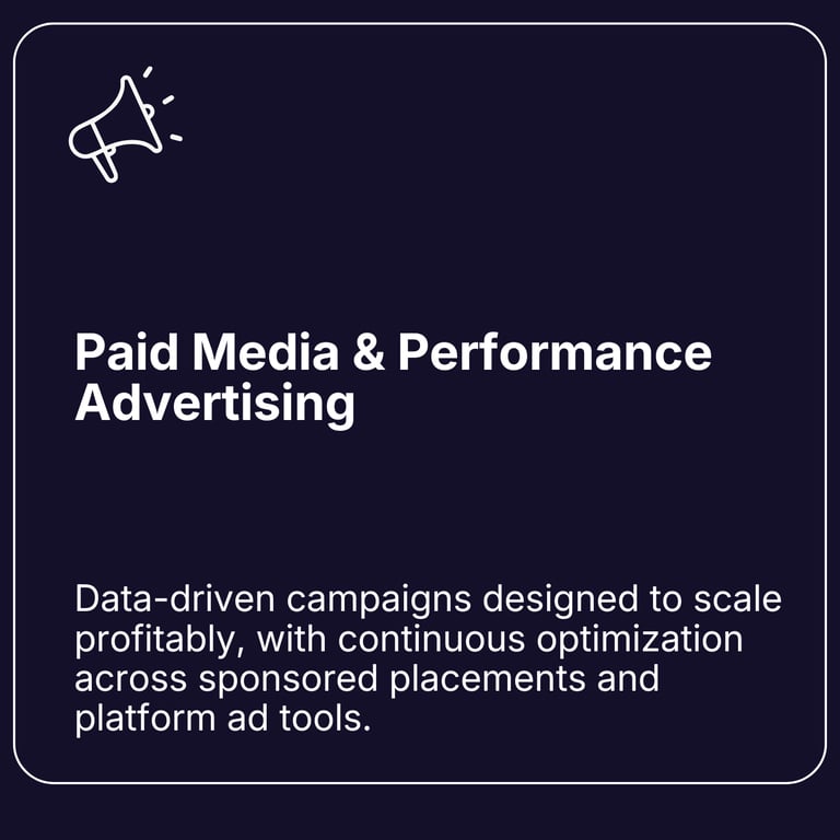 Campaigns are structured for launch, growth, defense, and retention, aligned with marketplace performance signals.